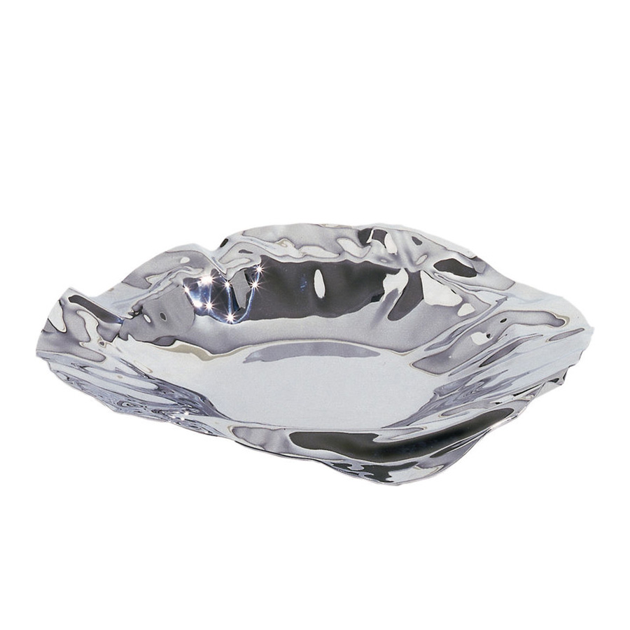 Отличительные черты коллекции — это тонкие стенки, легкие невесомые формы и причудливые «мятые» края, которые имитируют посуду, сложенную из серебристой бумаги.