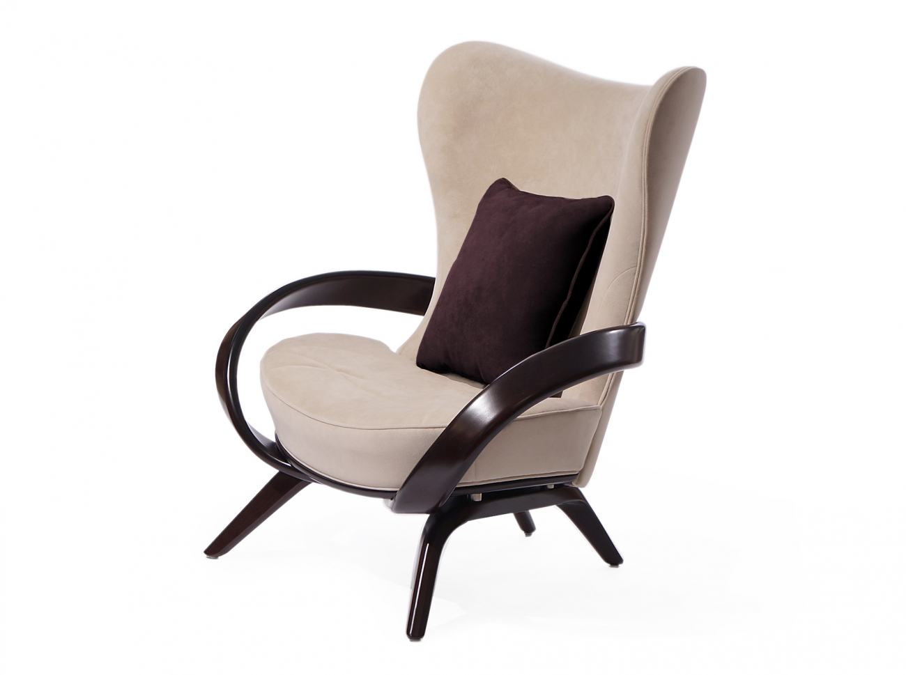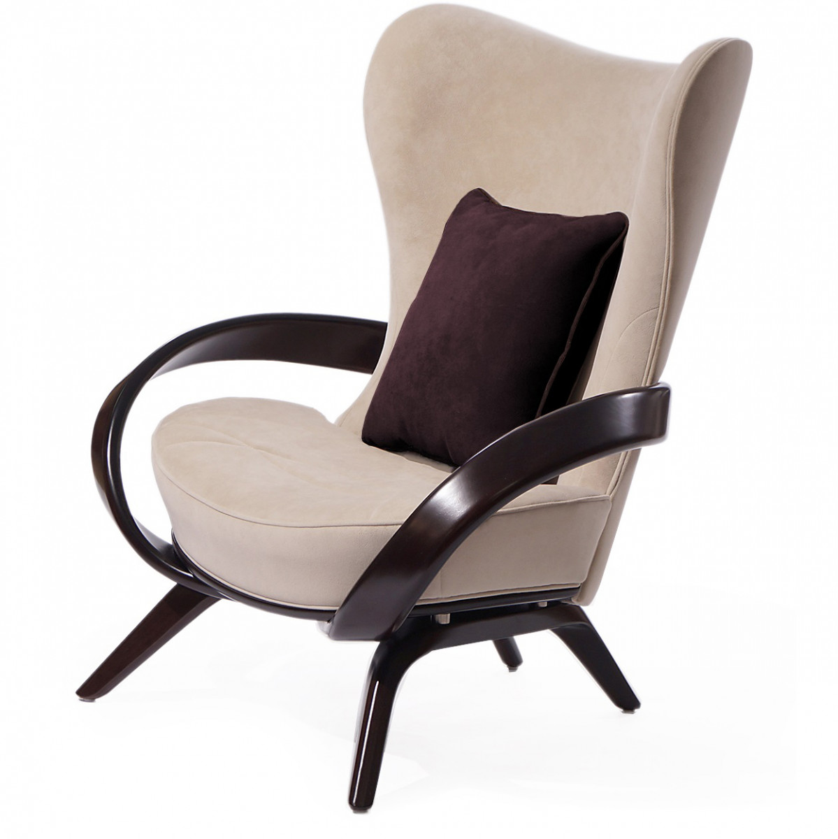 Дизайнерское кресло с изящными подлокотниками из натурального дерева.