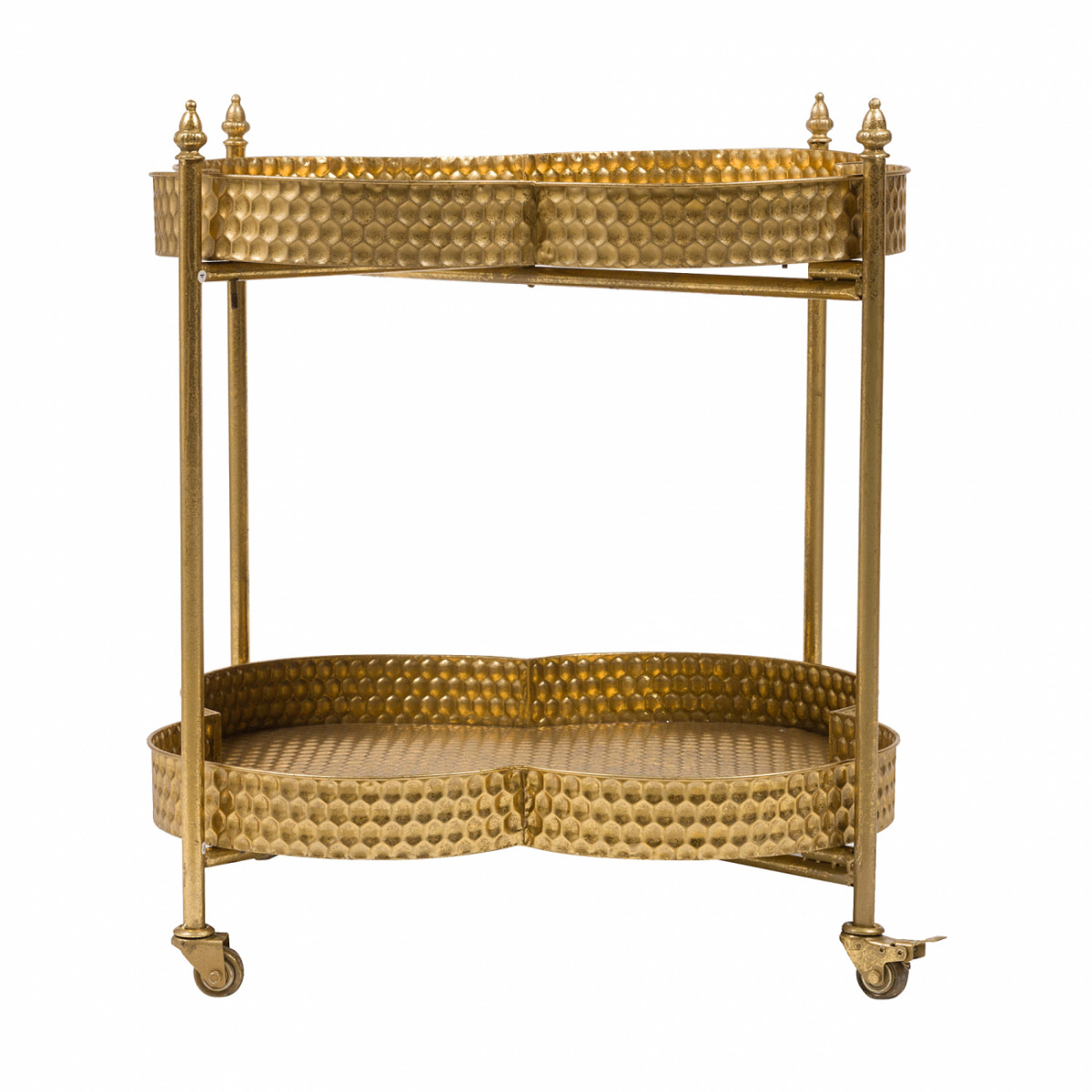 Современный сервировочный столик Clover станет замечательным вариантом для домашнего интерьера, с легкостью впишется в любую квартиру. Модель выполнена из металла в виде двух полок в форме листочков клевера золотистого цвета. Сервировочный столик Clover — просто идеальный помощник любой хозяйке, это очень функциональная и удобная деталь интерьера, которая позволяет перенести кусочек кухни в любую часть квартиры. Он просто незаменим, когда неожиданно пришли гости, большое застолье и мало места, да и для романтического ужина при свечах сервировочный столик на колесах подойдет идеально. Купите в нашем интернет-магазине сервировочный столик Clover — это будет хорошей находкой для себя или презентом на новоселье.