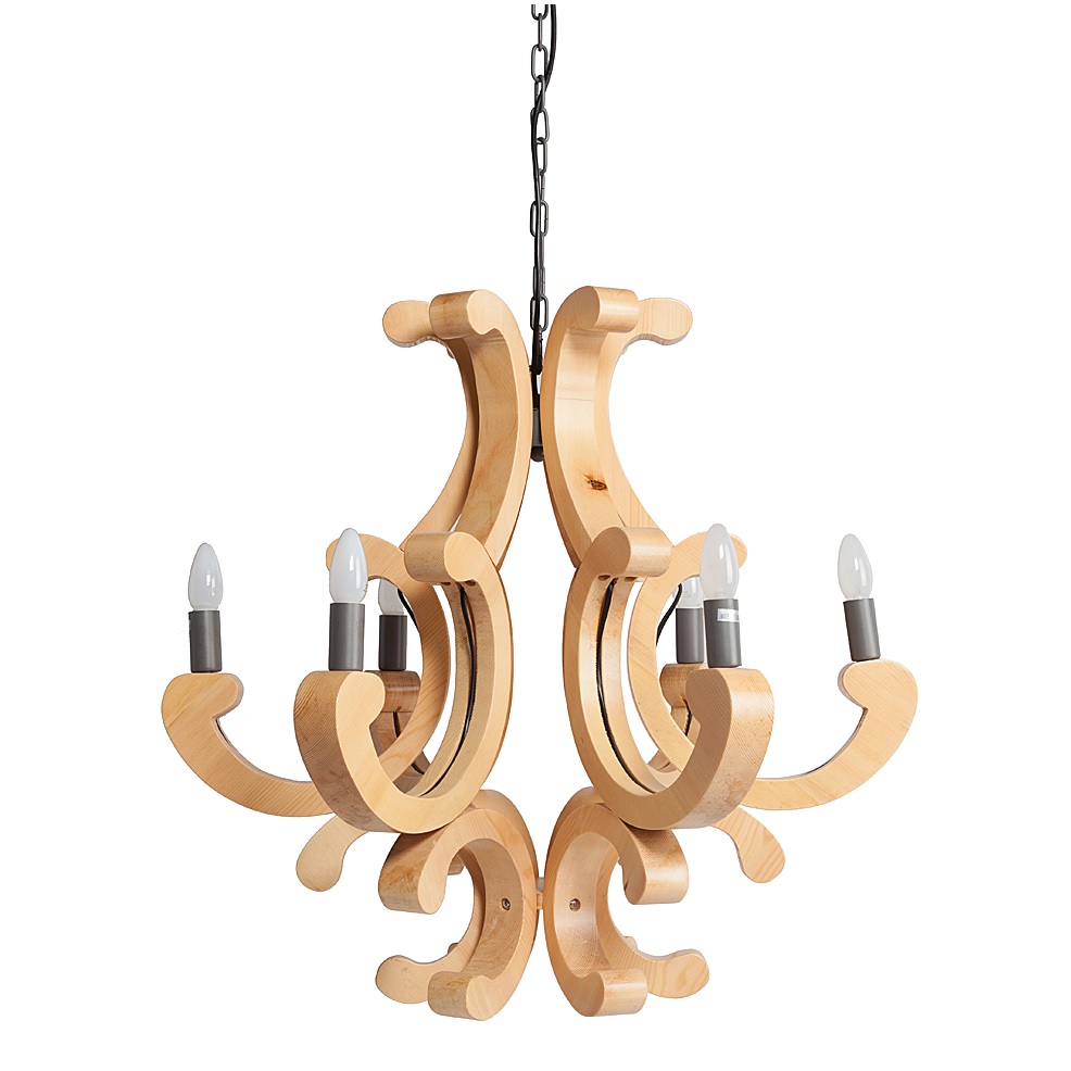 Люстра Cornaco. Люстра Cornaco выполнена из натурального дерева светло-коричневого цвета, рассчитана на 6 лампочек в виде свечей. Арматура выполнена из металла, высота регулируется за счет звеньев цепи. Предназначена для использования со светодиодными лампами. Эта люстра словно создана для ценителей и эстетов, для тех, кто может разглядеть всю её привлекательность. Она вам понравилась? Покупайте, не пожалеете!