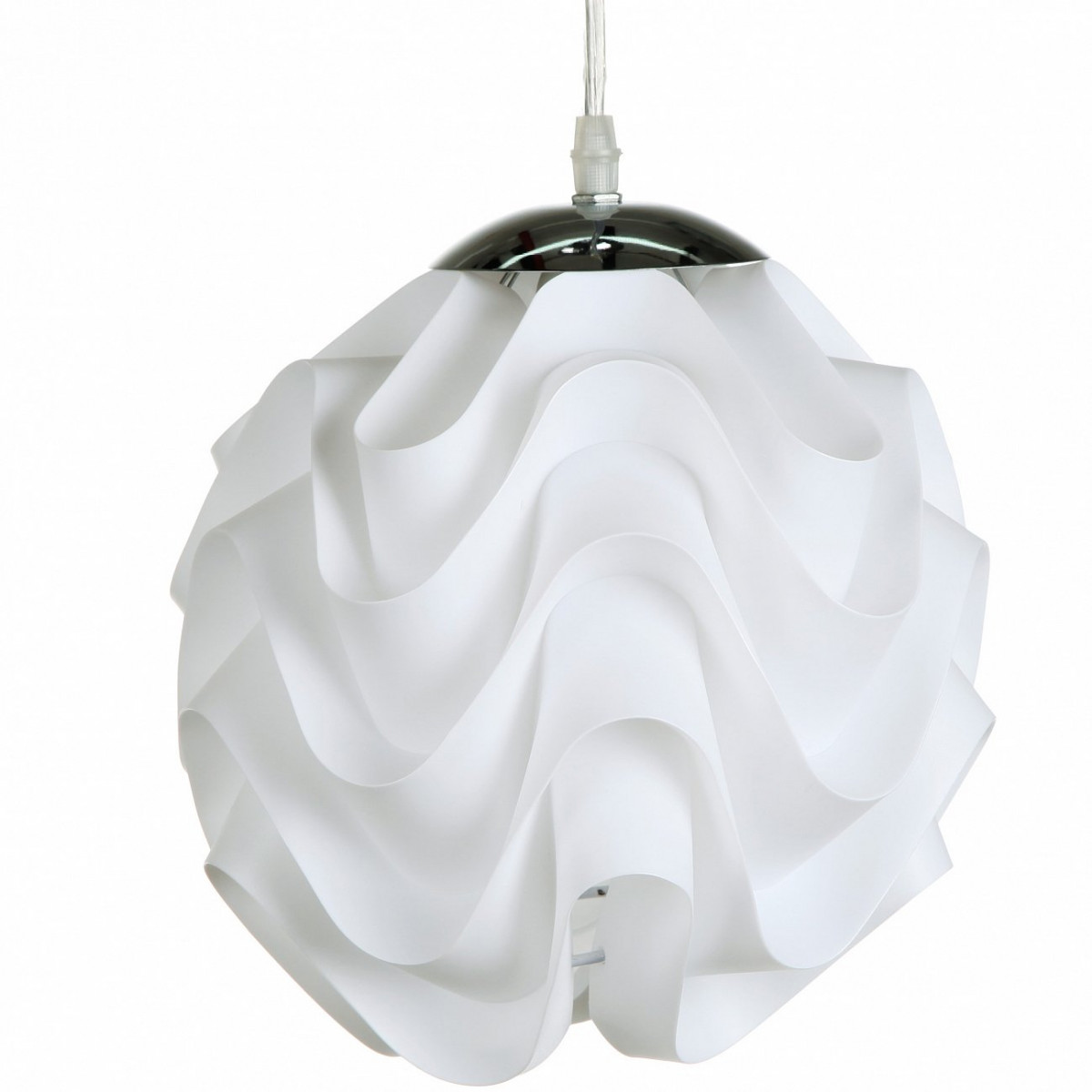 Подвесной светильник Ozzy в стиле модерн, с гофрированным тканевым абажуром подойдет как для городских апартаментов, так и для загородного дома. Шарообразный абажур молочного цвета и хромированное металлическое основание, обладая незамысловатыми формами, производят впечатление изысканной простоты и изящества. Такой светильник придает интерьеру оригинальность и свежесть.